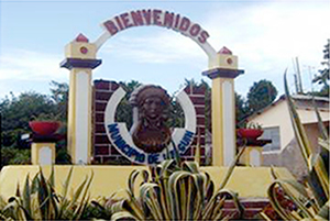“En el frontis de la estructura construida junto a la carretera que, en su interior contiene al aldabón, hay un letrero que dice: ¡Bienvenidos! Y, en la parte de atrás, para que lo lea quien sale, se lee: ¡Feliz viaje!”.
