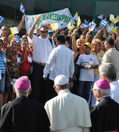 HOLGUÍN, Cuba.- Al llegr a Holguín, el Papa Francisco recibió el abrazo de su hermano Obispo, Mons. Emilio Aranguren Echeverría. Junto a él estaba el Obispo emérito de la Diócesis Mons. Hector Luis Peña que se entretuvo unos momentos saludándole.