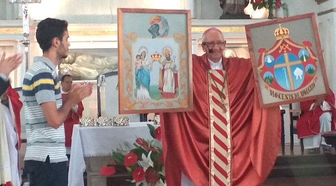 En este día, y delante de los presentes se le hizo entrega al Obispo de un cuadro con el Escudo de la Diócesis y otro con el Escudo de la Ciudad