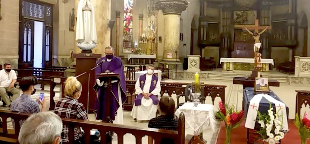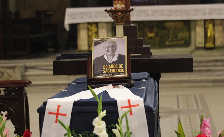 Delante del altar se habían colocado los restos jesuita cubano, con una fotografía que recordaba sus 50 años de sacerdocio.