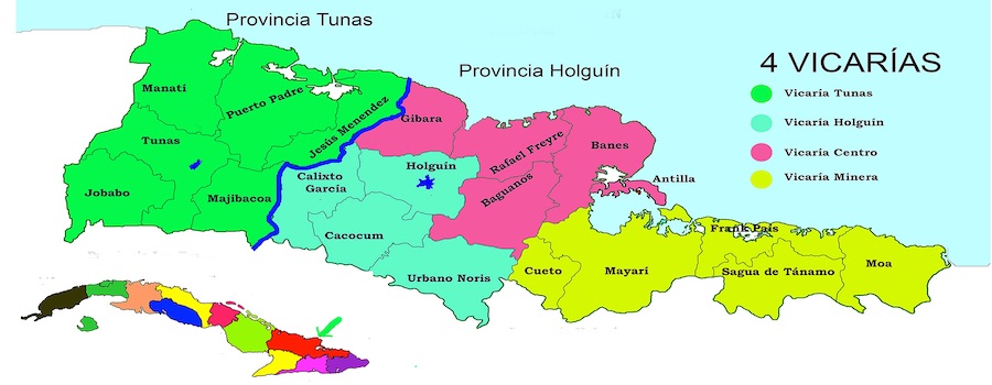 La Diócesis de Holguín fue erigida el 8 de enero de 1979 y ha tenido dos Obispos: Mons. Héctor Luis Peña Gómez (1979-2005) y el actual, Emilio Aranguren Echeverría. Es una Diócesis muy extensa: 15 mil kilómetros cuadrados, con 20 municipios (14 de la Provincia Holguín 6 de la Provincia de Las Tunas), para una población poco mayor de millón y medio de habitantes. Fue visitada por el Papa Francisco el 21 de septiembre de 2015.