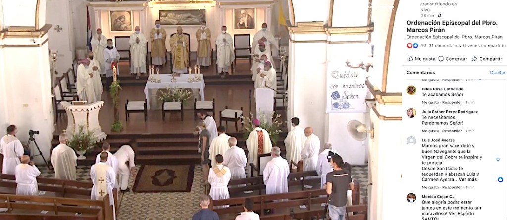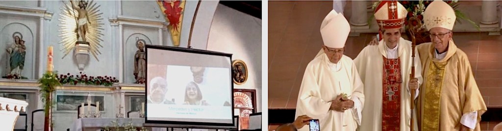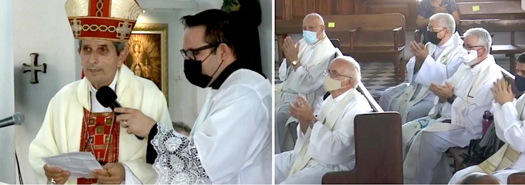 En las palabras de la homilía, Mons. Aranguren dirigió un saludo a los presentes y a quienes seguían el acto en directo, por redes sociales. Quienes entraban en la transmisión podían enviar mensajes que aparecían en sus propias pantallas constantemente.