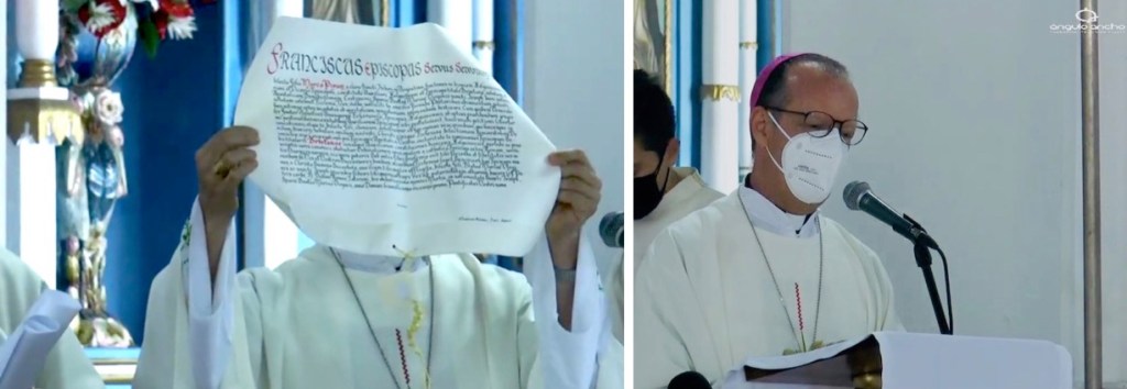 Siguiendo el rito de ordenación Mons. Emilio Aranguren, Obispo de la Diócesis de Holguín, le preguntó al Canciller, P. Francisco Expósito por los documentos de nombramiento y el Nuncio leyó la Bula Papal.