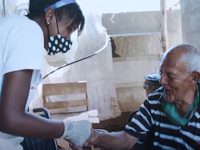 En el video, las imágenes de los jóvenes cantando se entrelazan con los mismos jóvenes visitando los hogares, conversando con ancianos y enfermos y llevando alegría.