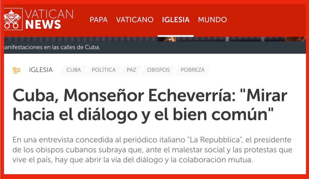 En otra información Vatican News se hace eco de una entrevista concedida por el Obispo de la Diócesis de Holguín al periódico italiano «La Repubblica».
