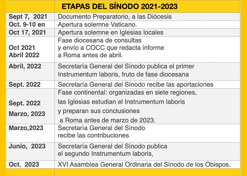 Este Sínodo será distinto en que no se trata de una sola reunión de obispos sino que comenzará con etapas previas de consulta a las iglesias locales a lo largo de dos años.