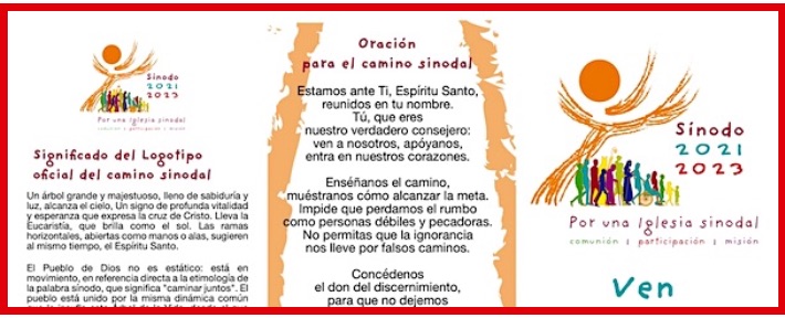 El tríptico explica la imagen del Logo para el Sínodo, ofrece la oración para el camino sinodal, explica lo que es un sínodo, sus etapas, quienes están invitados a participar y lo que se propone.