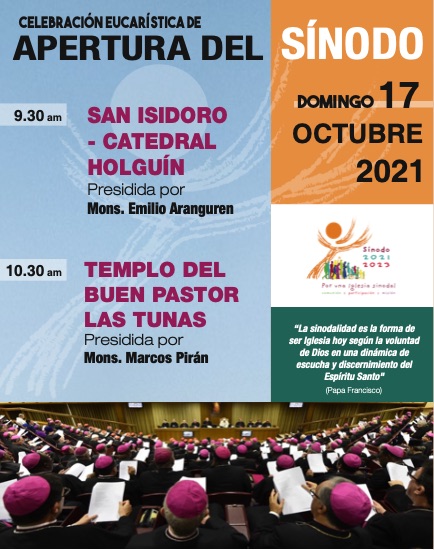 HOLGUÍN, Cuba.- Un cartel, un tríptico explicativo, una nueva edición del boletín diocesano, un programa dominical en las emisoras provinciales de radio y una Eucaristía solemne en la Catedral de Holguín y en el templo del Buen Pastor de Las Tunas son algunas de las acciones que ha preparado la Diócesis de Holguín para dar comienzo al caminar conjunto hacia el Sínodo de 2023 que se inicia en el mundo entero el 17 de octubre.