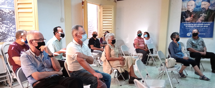 Durante unos minutos, los participantes contemplaron un pase de fotografías que ilustraban los muchos aspectos de la vida y actividades de quien fue iniciador y director del Centro Diocesano para la Formación de los laicos holguineros.