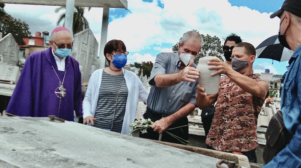 Desde los primeros bancos participaron en la Misa los familiares del sacerdote, acompañados por numerosos fieles que también hicieron el recorrido a pie hasta el cercano cementerio de la ciudad, en donde se depositó la urna con sus cenizas, en el panteón familiar.