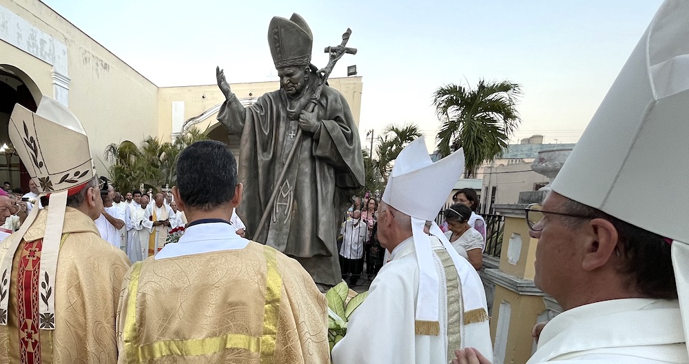 Los conductores recuerdan el encuentro con el cardenal Beniamino Stella en la catedral de Holguín el 3 de febrero y repiten algunas frases de san Juan Pablo II hace 25 años comentadas por el cardenal Stella durante su homilía.