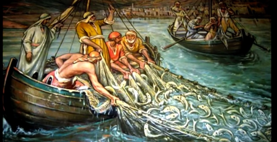 La invitación es a propósito del Evangelio cuando Jesús se encuentra con los discípulos que estaban lavando las redes para bajar de la barca y guardarlas, desilusionados por no haber pescadlo nada. Jesús sube a la barca y les invita a remar mar adentro y volver a echar las redes.