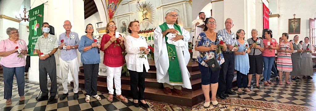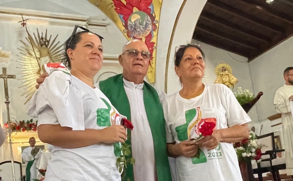 Al terminar la Eucaristía hubo reconocimiento para los y las catequistas que durante años han formado a la juventud. Se fueron acercando al presbiterio y recibieron de los jóvenes una rosa roja, mientras todos aplaudían.