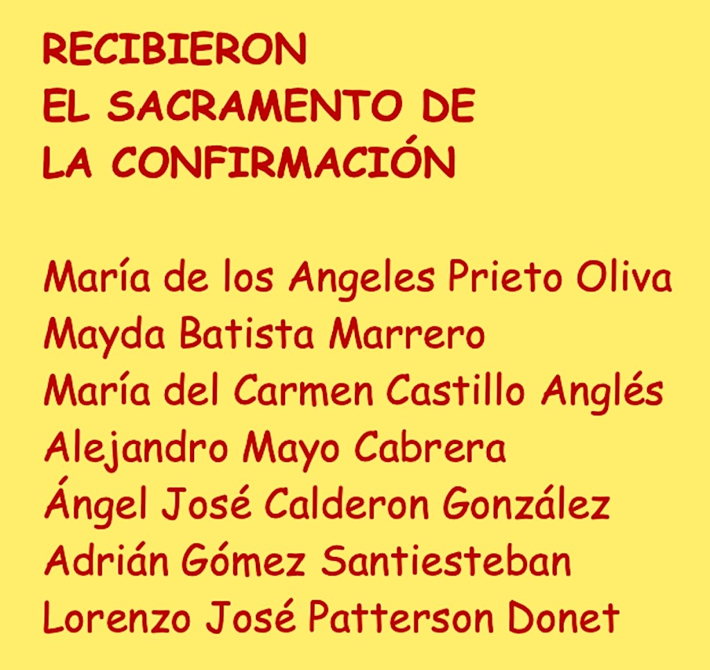 En presencia de la comunidad reunida , Mons. Emilio Aranguren Echeverría les invitó a seguir reuniéndose para estudiar el ABC del Laico Cubano y el Decálogo del Laico Católico para que asuman vocacionalmente lo que significa recibir el Sacramento de la Confirmación.