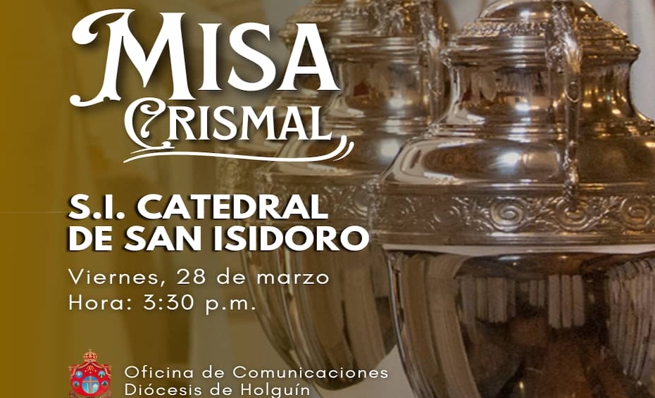 HOLGUÍN, Cuba.- Con la Pascua ya cercana, el obispo de la Diócesis de Holguín ha convocado a los católicos a unirse el viernes 28 de marzo a las 3:30 p.m. en la celebración de la Misa Crismal durante la que 22 sacerdotes de la Diócesis renovarán su “Sí” de permanencia “aquí y ahora”, para cuidar y alimentar a las ovejas que Dios les ha encomendado.