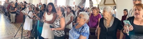 Una fotografía del Santo Padre había sido colocada en lugar prominente y con el canto de entrada se recordó su visita bajo el lema Misionero de la Misericordia.