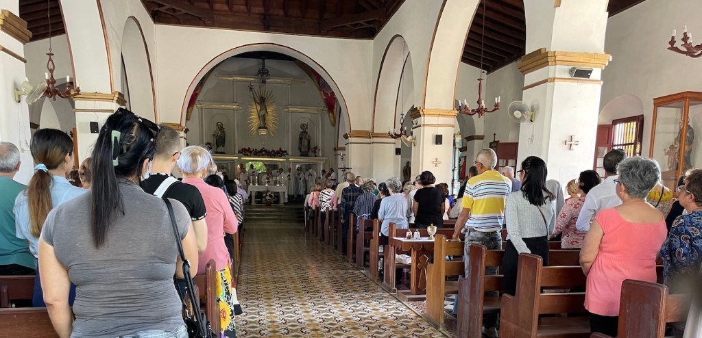 Sacerdotes y diáconos participaron en la Misa en la catedral que se había llenado de católicos de la ciudad y de comunidades, también de Las Tunas, para orar por el Papa Francisco.