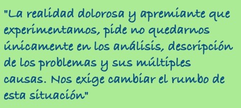 Los obispos reconocen que son muchos en todos los ámbitos de la nación los que “están cada día luchando, amando, sirviendo, incluso con abnegación y sacrificio, por un futuro mejor para el país” y señalan que esta realidad dolorosa y apremiante exige no quedarse en análisis, sino un cambio de rumbo, inquietud expresada en anteriores mensajes de los mismos obispos que han abogado por la escucha respetuosa de todos los que, amando la tierra donde han nacido, desean aportar, con sus competencias y potencialidades, a la construcción de una nación más próspera, justa y feliz” .