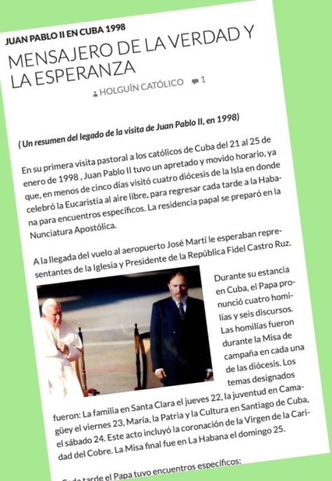 HOLGUÍN, Cuba.- Hace 28 años entre el 21 y el 25 de enero, el Papa San Juan Pablo II visitó Cuba como Mensajero de la Verdad y la Esperanza. Recorrió las calles de cuatro ciudades cubanas, y celebró la Eucaristía en Santa Clara, Camagüey, Santiago de Cuba y La Habana.