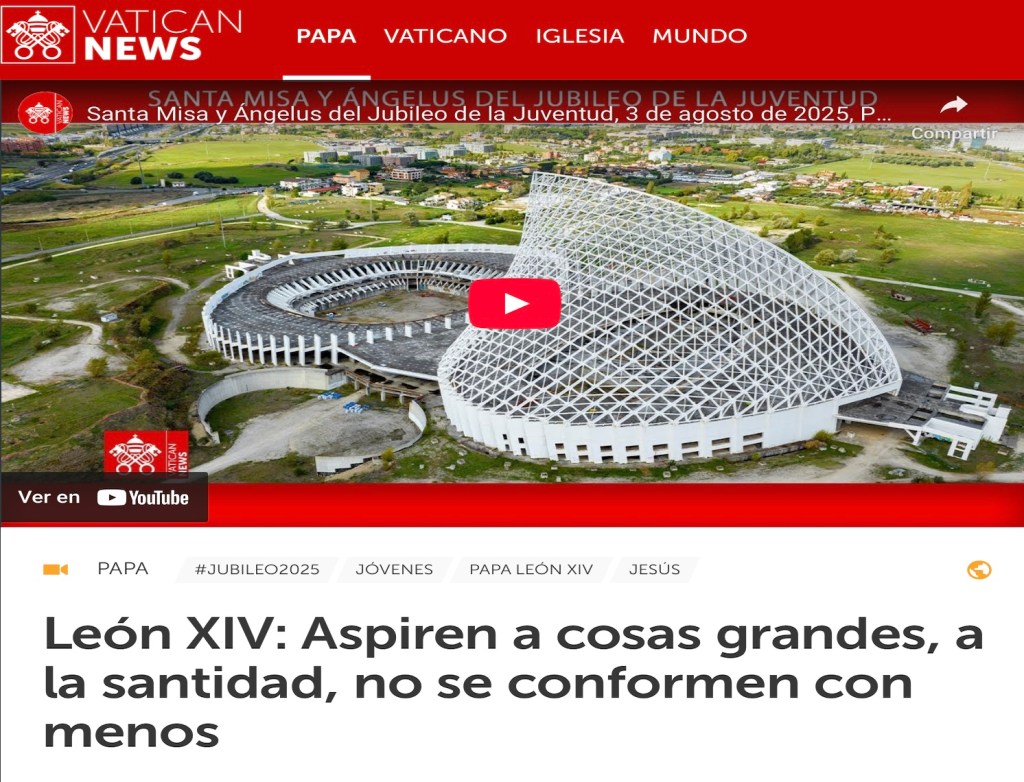 TOR VERGARA, Italia.- Mas de un millón de jóvenes de 146 países, con 7.000 sacerdotes y 450 obispos estuvieron presentes en la Misa de clausura del Jubileo de los Jóvenes, presidida por el Papa . El Vaticano se ha hecho eco de los mensajes y actividades papales durante los días 28 de julio a 3 de agosto, que puedes leer el el sitio web: Vatican News.